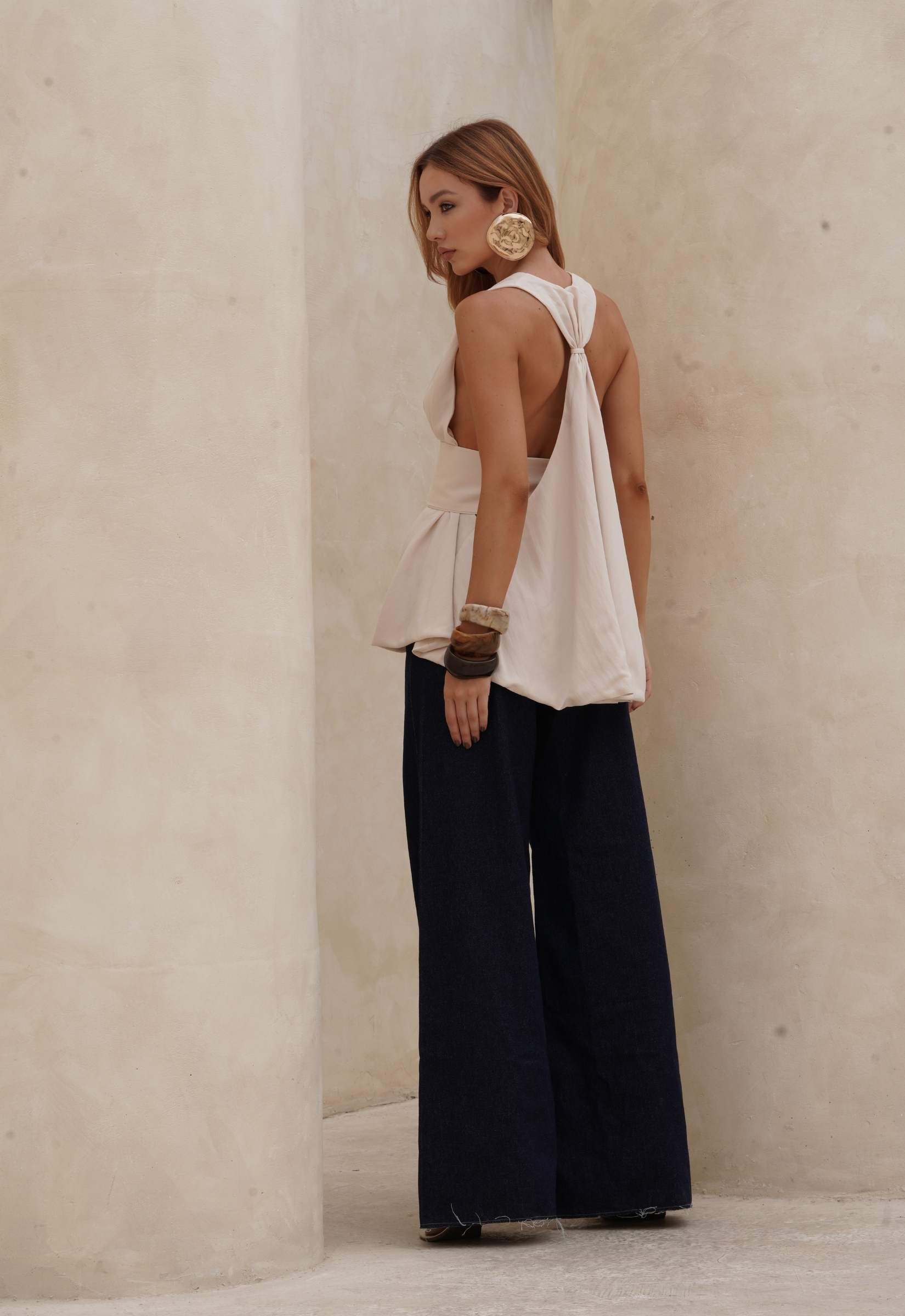 O design sem alças valoriza os ombros e cria uma silhueta moderna e atemporal. Para completar o look, combine com a Calça Thais para um visual monocromático impecável ou aposte em peças de fibras naturais, como saias midi ou pantalonas leves. Sandálias minimalistas e acessórios dourados elevam ainda mais a proposta.