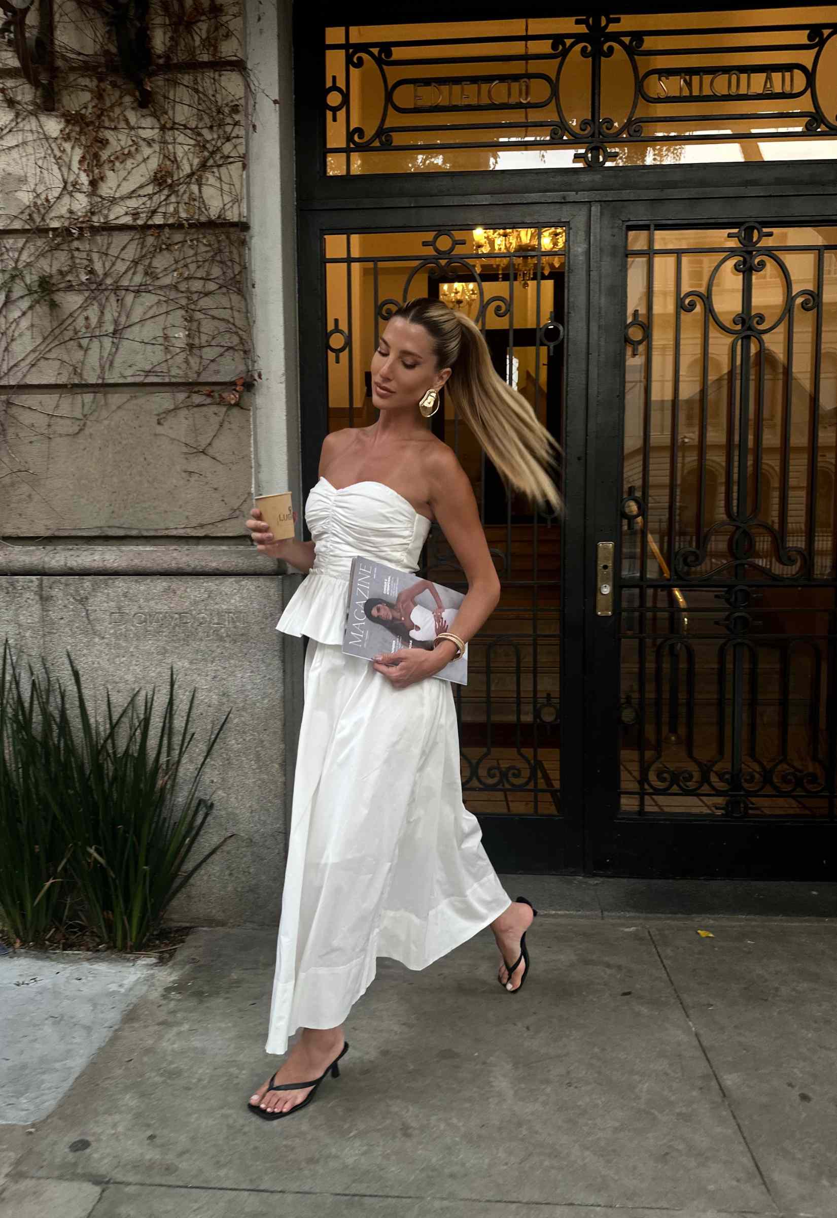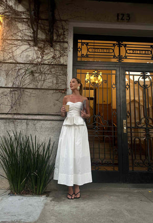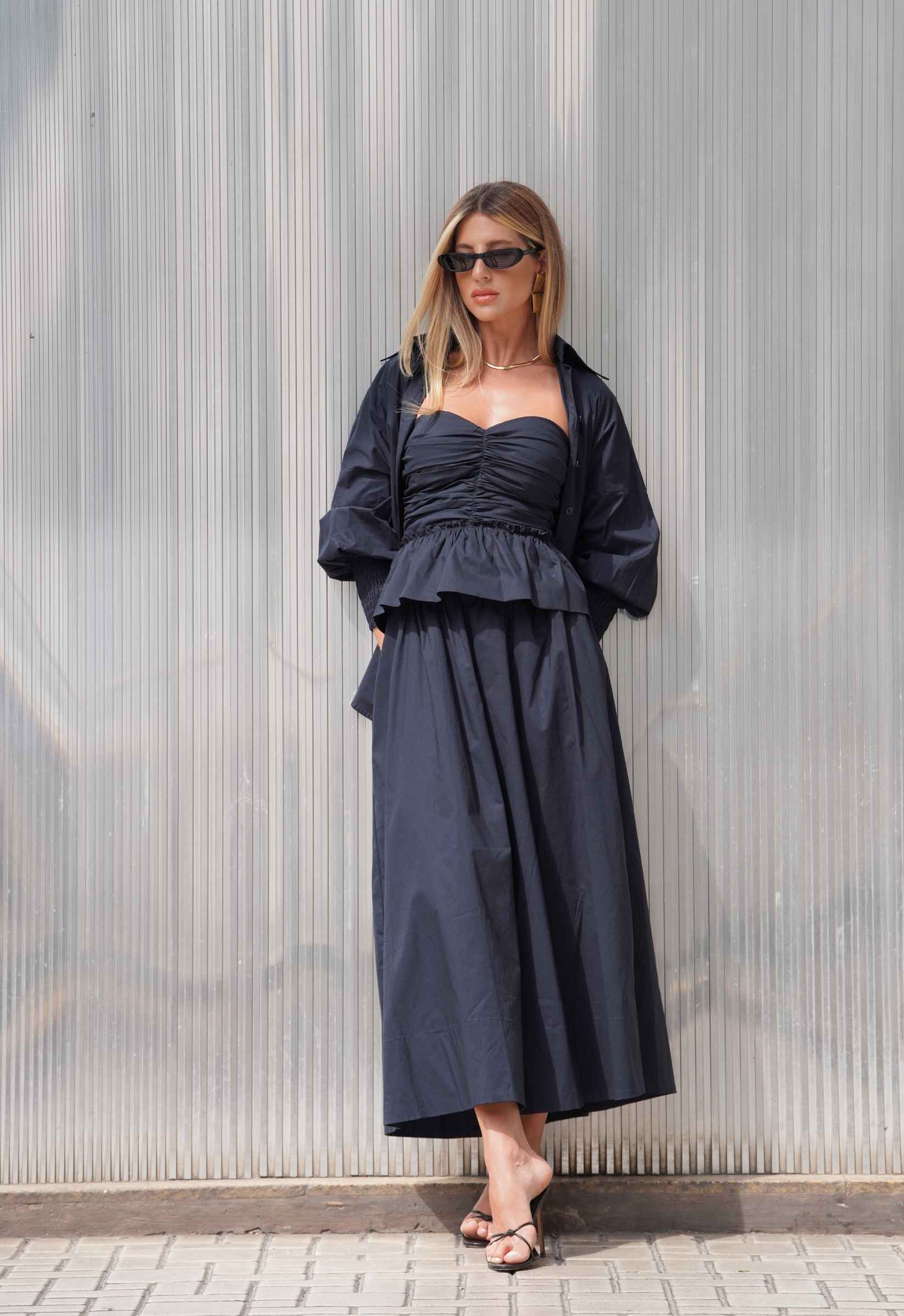 Dica de styling: use a Saia Midi em Algodão Clara com uma blusa de seda e sandálias de salto para um visual chic, ou combine com uma t-shirt básica e tênis para um look casual e moderno.
