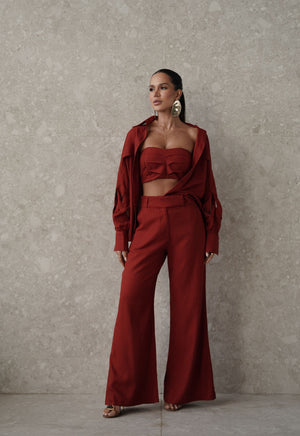 Use com o Top e a Camisa Marselha para um look monocromático e atemporal, que equilibra movimento e elegância com uma estética fresca e contemporânea. Um visual ideal para quem busca versatilidade sem abrir mão da sofisticação.