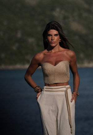 A Calça Paros é parte da família Paros da coleção Dolce Mare, que traz a palha como símbolo da conexão com a natureza e o estilo mediterrâneo. Leve, elegante e descomplicada, ela é perfeita para composições que equilibram frescor e sofisticação nos dias quentes.