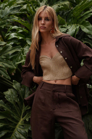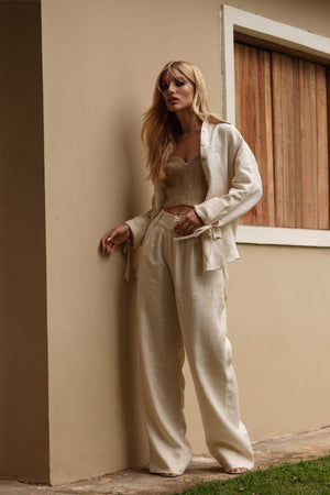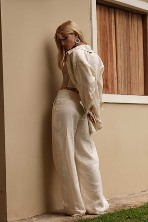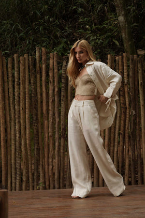 A Calça Linho em Alfaiataria Sicília faz parte da coleção Refúgio, linha que celebra a sofisticação atemporal e versatilidade. Com seu design casual e elegante, é uma peça que se adapta perfeitamente a diversas ocasiões, desde um almoço descontraído até eventos mais formais. Sua modelagem traz caimento impecável, valorizando a silhueta e proporcionando conforto ao longo do dia. O linho 100% natural oferece respirabilidade e leveza, ideal para os dias mais quentes da temporada.