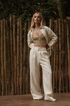 Dica de styling: use a Calça Linho em Alfaiataria Sicília com uma blusa de seda e sandálias de salto para um visual sofisticado. Para um look mais casual, combine com uma camiseta básica e tênis brancos.