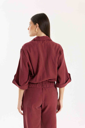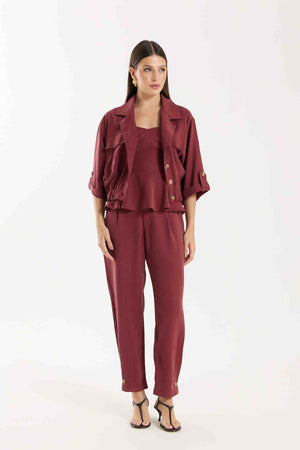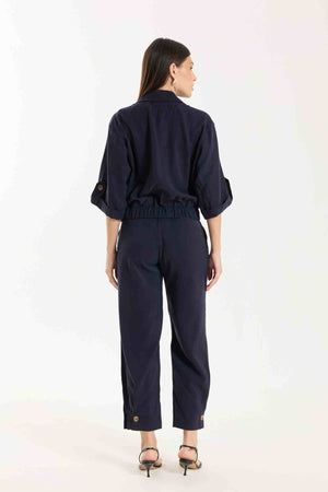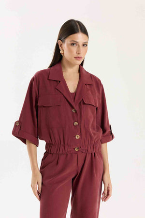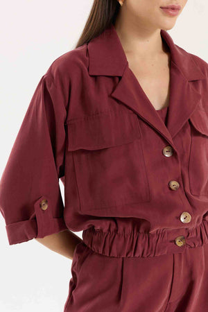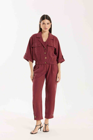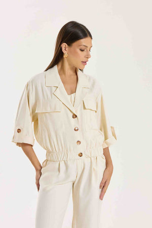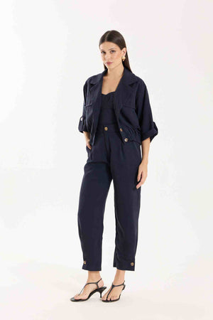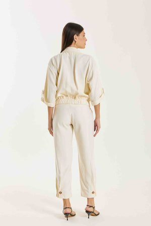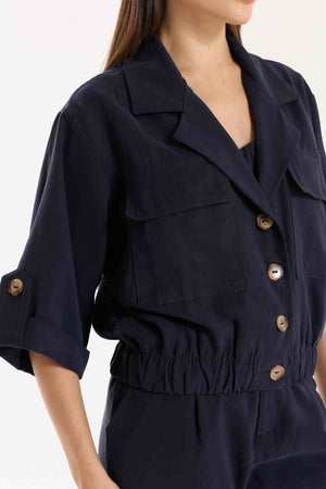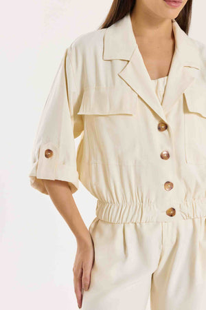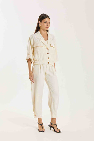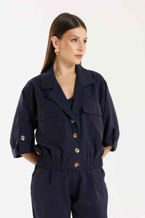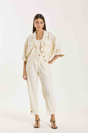 Jaqueta Antonella com modelagem e mangas mais curtas. Possui bolsos utilitários e fechamento com botões tartaruga, além de barra com elástico para melhor ajuste. Conta também com bolsos funcionais. Confeccionada em Tencel, viscose encorpada que proporciona estrutura e toque macio.