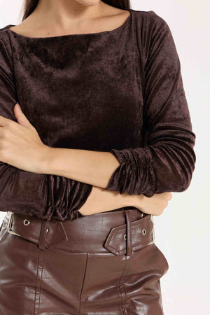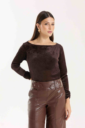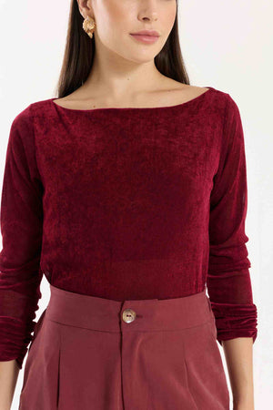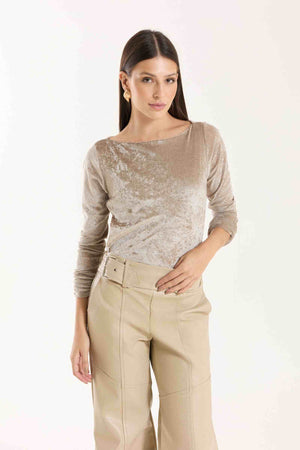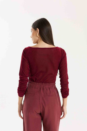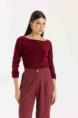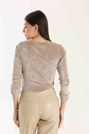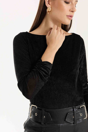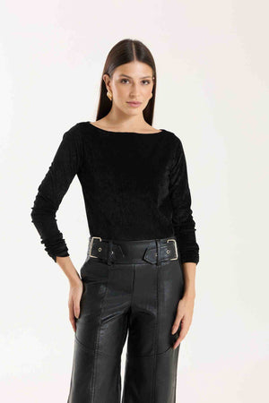 Body Alice com modelagem ajustada ao corpo. Possui decote canoa e mangas com detalhe franzido. Ideal para uso como segunda pele. Confeccionado em tule com acabamento em veludo, proporcionando conforto e toque macio.
